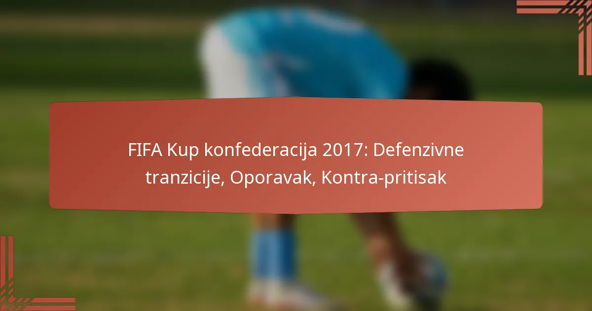 FIFA Konfederacijski kup 2017. godine istaknuo je važnost obrambenih tranzicija, gdje se timovi brzo prebacuju iz napada u obranu nakon gubitka posjeda. Ključne strategije poput trčanja za oporavak i kontra-pritiska bile su od vitalnog značaja za održavanje obrambenog oblika i vršenje pritiska na protivnike, što je na kraju utjecalo na ishod utakmica. Ovi taktički elementi naglasili su dinamičnu prirodu modernog nogometa i kritičnu ulogu brze reorganizacije u natjecanjima visokog uloga.