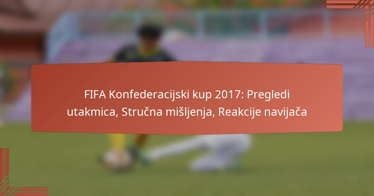 FIFA Konfederacijski kup 2017. bio je uzbudljiv prikaz međunarodnog nogometa, s intenzivnim utakmicama koje su odredile prvaka turnira. Uz stručne analize koje su istaknule taktičke inovacije i izvanredne nastupe, navijači su strastveno sudjelovali, dijeleći svoje reakcije i uvide na društvenim mrežama. Ovaj događaj nije samo zabavljao, već je i postavio temelje za buduće natjecanja, ostavljajući trajni utjecaj na nogometnu zajednicu.