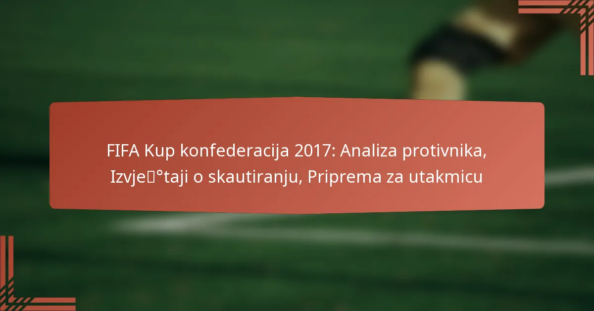 Analiza protivnika na FIFA Konfederacijskom kupu 2017. uključuje procjenu raznih aspekata kao što su taktička postavljenja, snage igrača i nedavni nastupi. Ovaj sveobuhvatan pristup pomaže timovima da se učinkovito pripreme za svoje utakmice i steknu konkurentsku prednost.