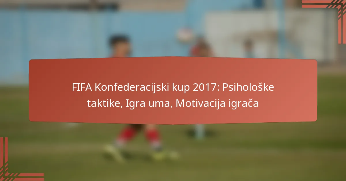 FIFA Konfederacijski kup 2017. istaknuo je značaj psiholoških taktika u sportu, fokusirajući se na poboljšanje timske izvedbe i motivacije igrača. Treneri i sportski psiholozi implementirali su strategije za upravljanje pritiskom i poticanje kohezije, dok su mentalne igre utjecale na ishod utakmica i moral igrača. Razumijevanje ovih psiholoških elemenata pruža uvid u to kako su timovi navigirali izazovima natjecanja s visokim ulozima.